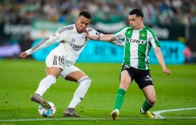 比赛第94分钟,贝蒂斯右后卫贝莱林在禁区内的推射,让皮球滚入了皇马的网窝。主裁判随即吹响了终场哨。记...