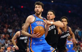 【搜狐体育战报】北京时间4月28日NBA季后赛,客场作战的雷霆以131-122击败太阳。霍姆格伦24...
